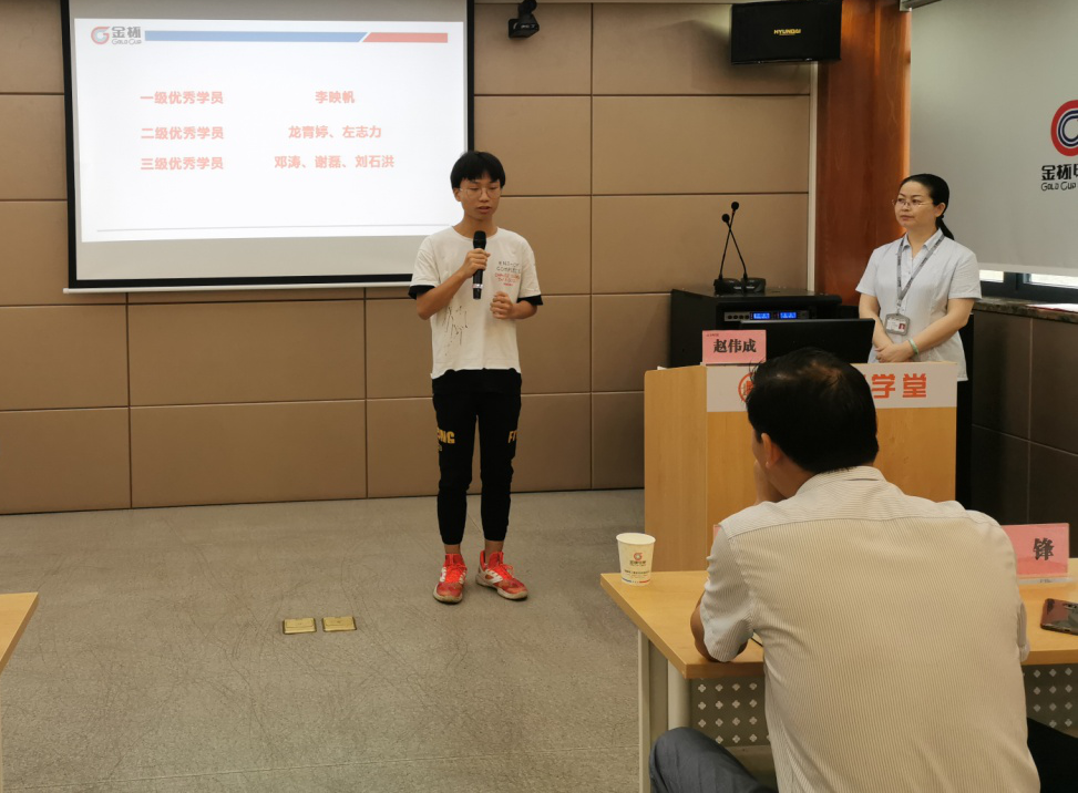优秀学员代表龙青婷和李映帆在典礼上谈了自己的感悟。两名优秀学员富有激情地表达了在未来的工作中,将不畏困难和挑战,扎根金杯,为金杯奉献自己的力量。