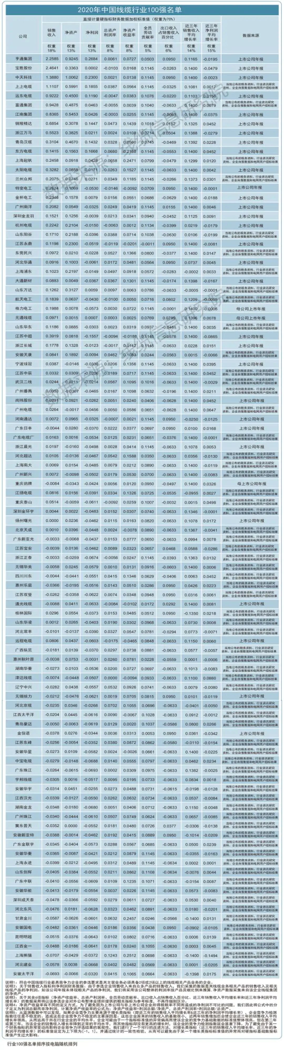附:2020年中国线缆行业最具竞争力企业100强榜单
